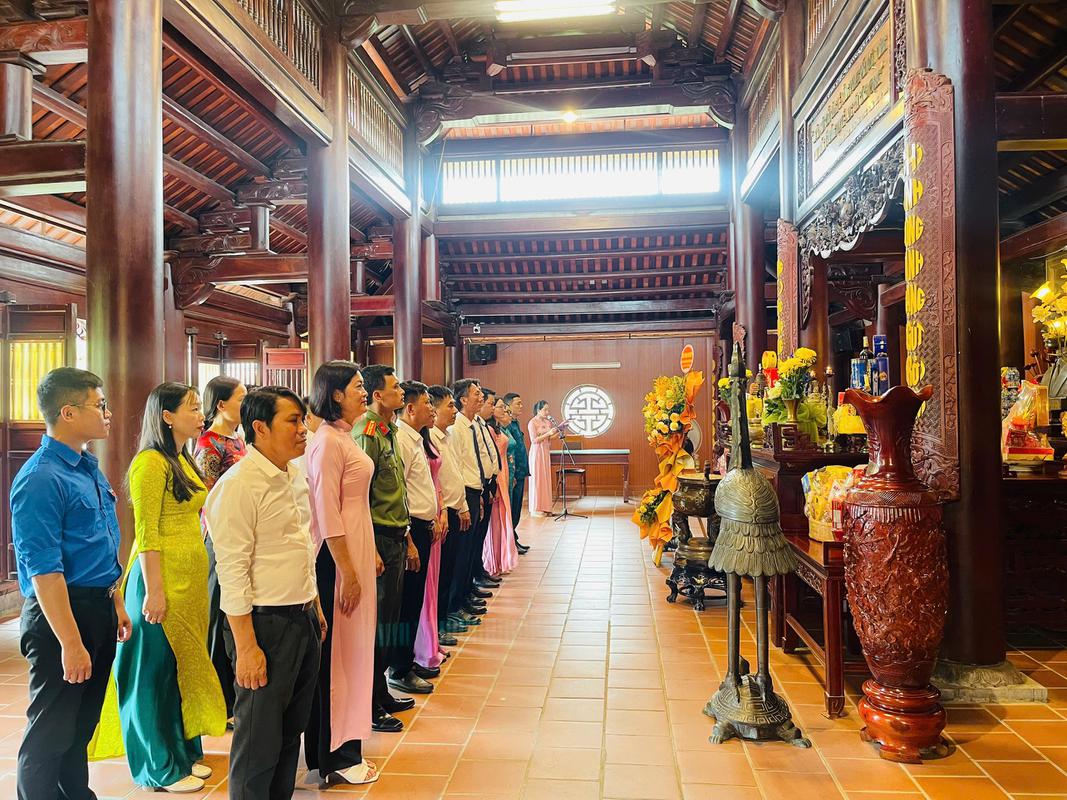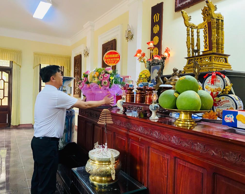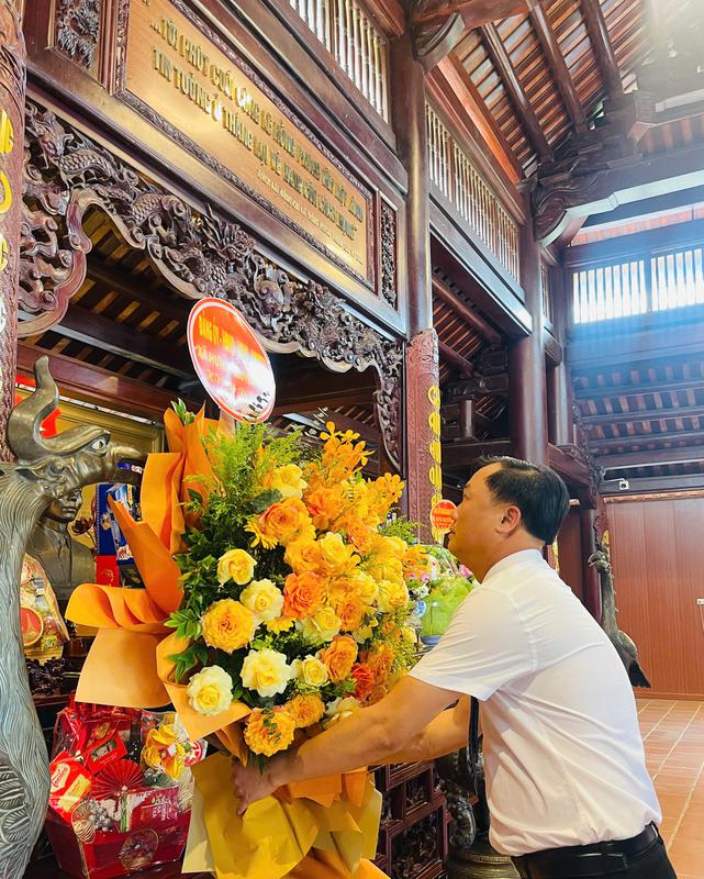 ĐỒNG CHÍ LÊ PHẠM HÙNG, BÍ THƯ ĐẢNG ỦY, CHỦ TỊCH HĐND DÂNG HOA TẠI NHÀ THỜ PHỤ MẪU TỪ ĐƯỜNG.