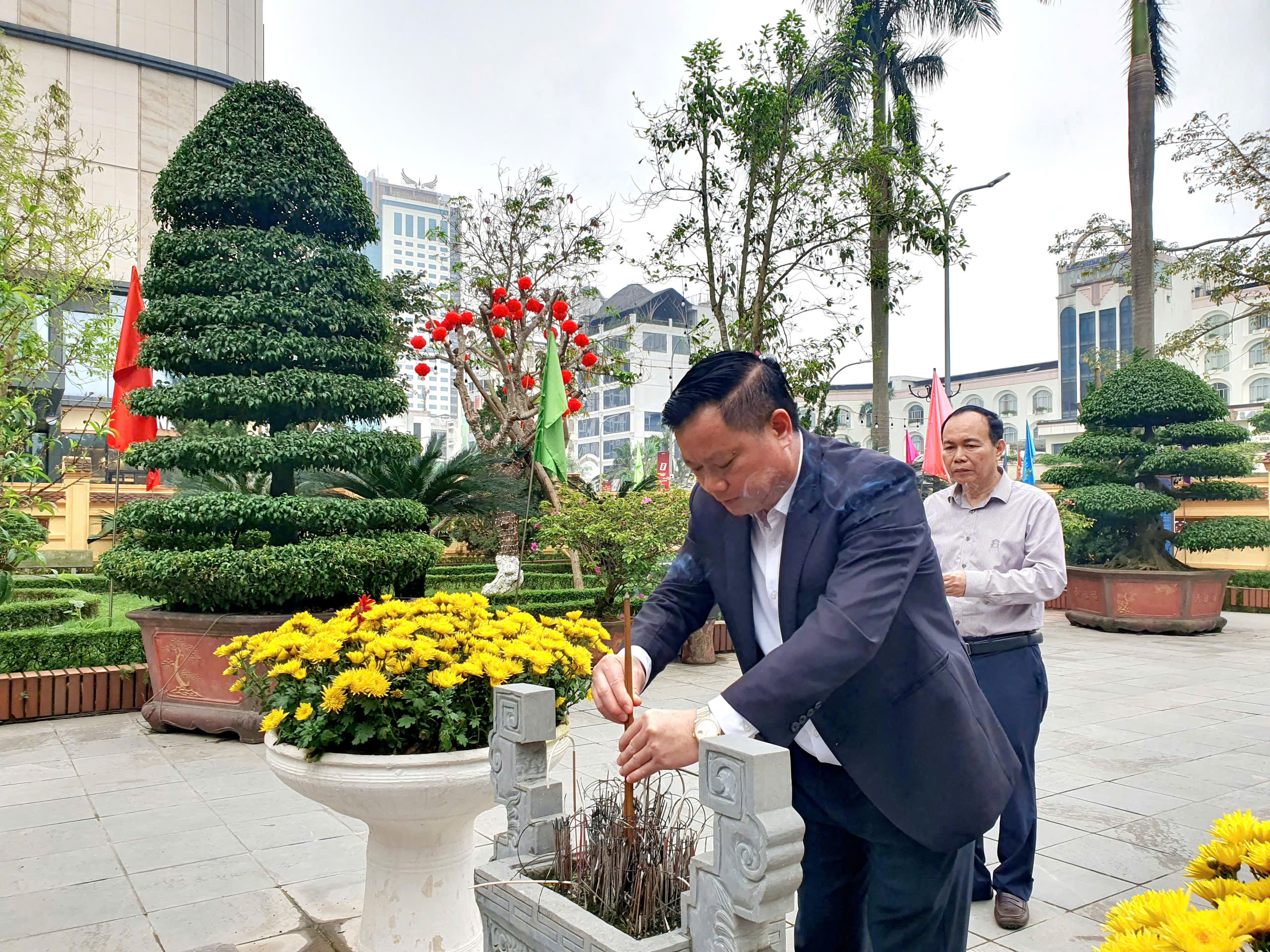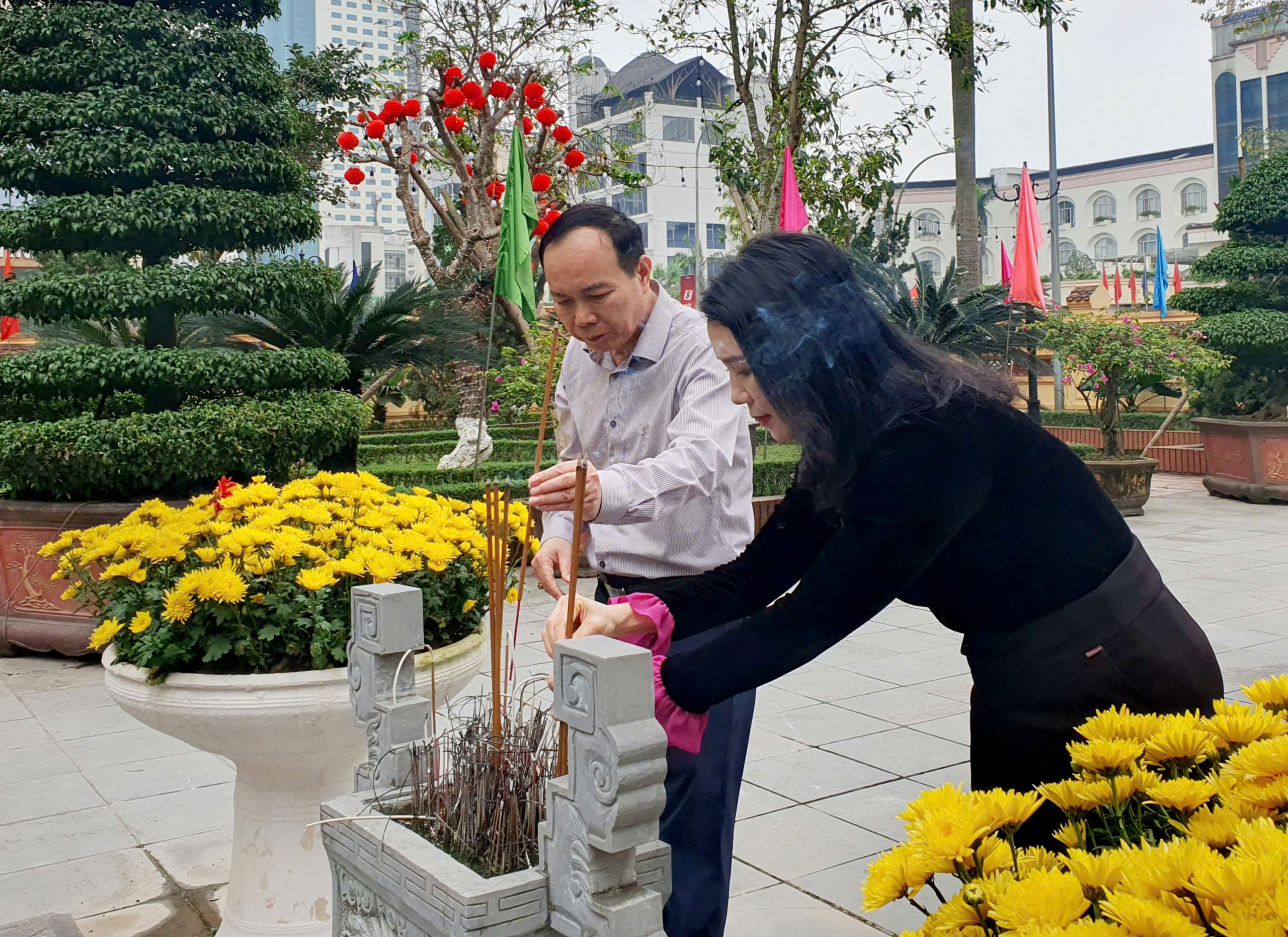 Cùng dự lễ dâng hương có bà Trần Thị Mỹ Hạnh - Ủy viên BCH Đảng bộ Tỉnh, Giám đốc sở Văn hóa, Thế thao và Du lịch; đại diện lãnh đạo các phòng thuộc sở, Ban Quản lý Di tích và phường Thành Vinh.