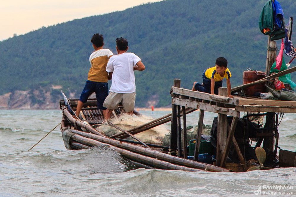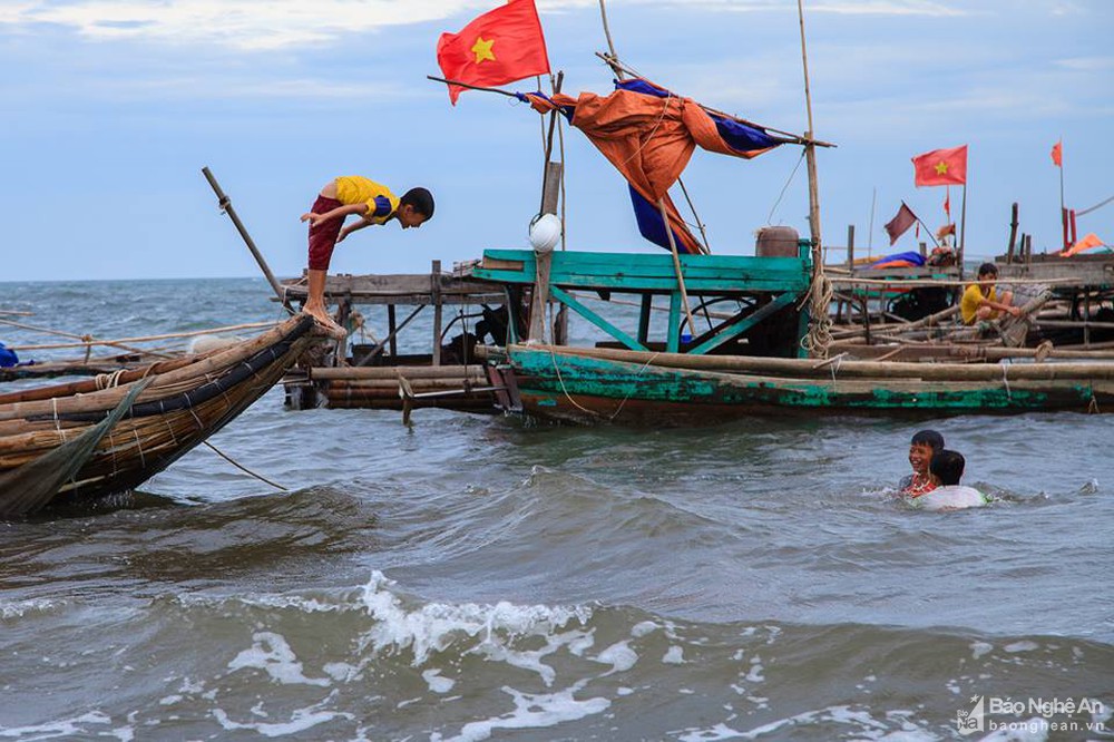 Dù vậy, nhịp sống ở làng chài nhỏ vẫn giữ không khí trầm mặc, bình yên rất riêng. Vào kỳ nghỉ hè, những đứa trẻ lớn giúp bố ra biển đánh cá. Ảnh: Duy Sơn