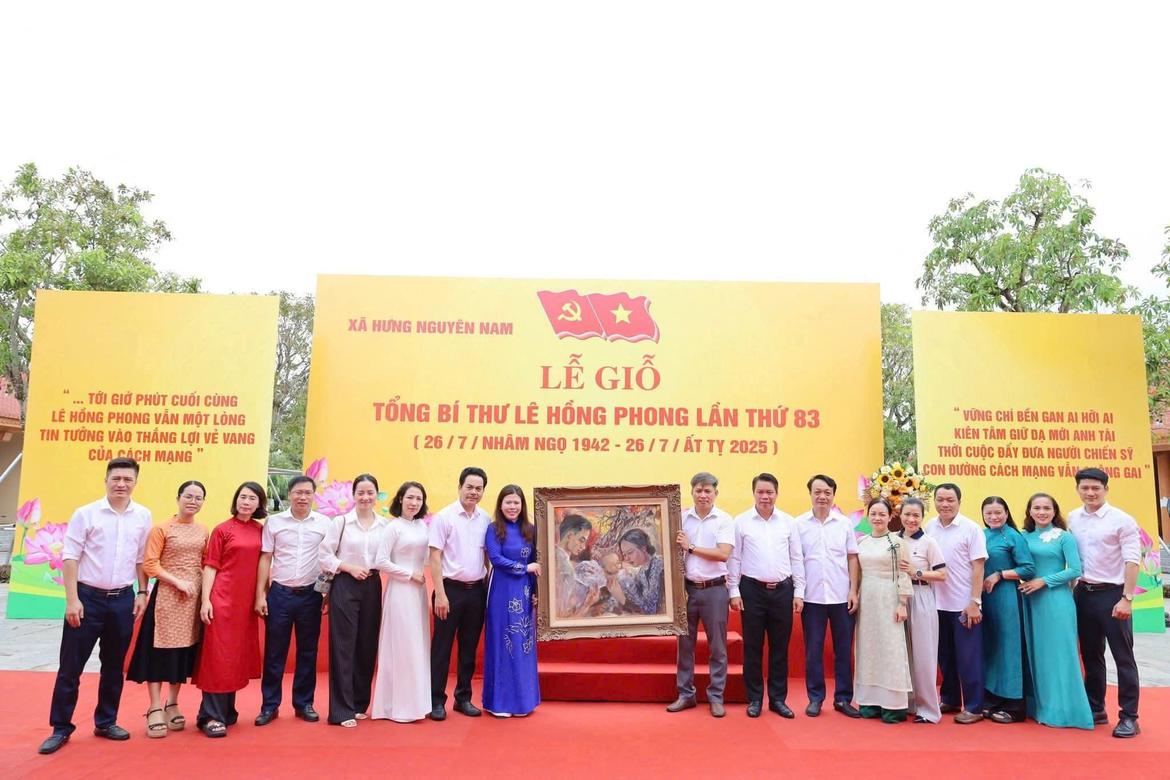 Trong không khí trang nghiêm của Lễ giỗ lần thứ 83 Tổng Bí thư Lê Hồng Phong, tập thể Chi bộ Khoa Âm nhạc – Mỹ thuật, Trường Cao đẳng Văn hóa Nghệ thuật đã có một nghĩa cử cao đẹp và đầy ý nghĩa: trân trọng trao tặng cho Ban Quản lý Di tích Nghệ An bức tranh nghệ thuật mang tên “Chung một cơ đồ”.