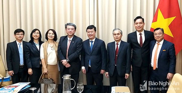 Đoàn công tác tỉnh Nghệ An chụp ảnh lưu niệm với Tổng Giám đốc Công ty Mitsubishi Corperation Việt Nam. Ảnh: Phan TúNổi bật trong các hoạt động hợp tác với Nhật Bản là các dự án viện trợ của Chính phủ Nhật Bản qua Cơ quan hợp tác phát triển Nhật Bản tại Việt Nam (JICA) cho tỉnh Nghệ An trên nhiều lĩnh vực như: xây cơ sở hạ tầng, nông nghiệp, nông thôn...