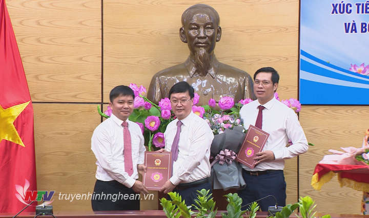 | Chủ tịch UBND tỉnh Nguyễn Đức Trung trao quyết định bổ nhiệm Giám đốc và Phó Giám đốc Trung tâm Xúc tiến Đầu tư Thương mại và Du lịch tỉnh Nghệ An. |