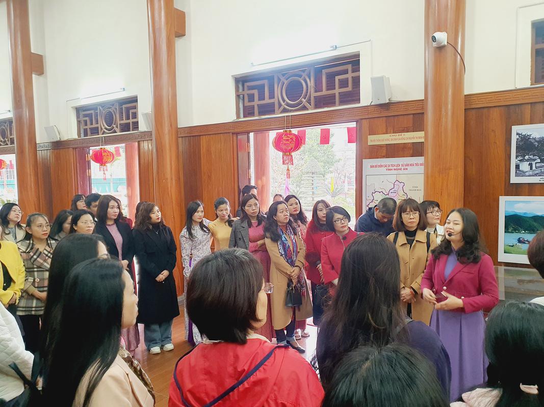Sau khi dâng hương đoàn đã nghe thuyết minh về thân thế, cuộc đời và sự nghiệp cách mạng của đồng chí Nguyễn Thị Minh Khai.