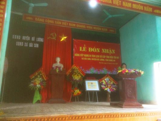 Hôm nay, ngày 13/3/2018 tại UBND xã Bài Sơn, huyện Đô Lương đã diễn ta lễ đón nhận bằng xếp hạng di tích lịch sử cấp tỉnh đền Yên Mỹ.
