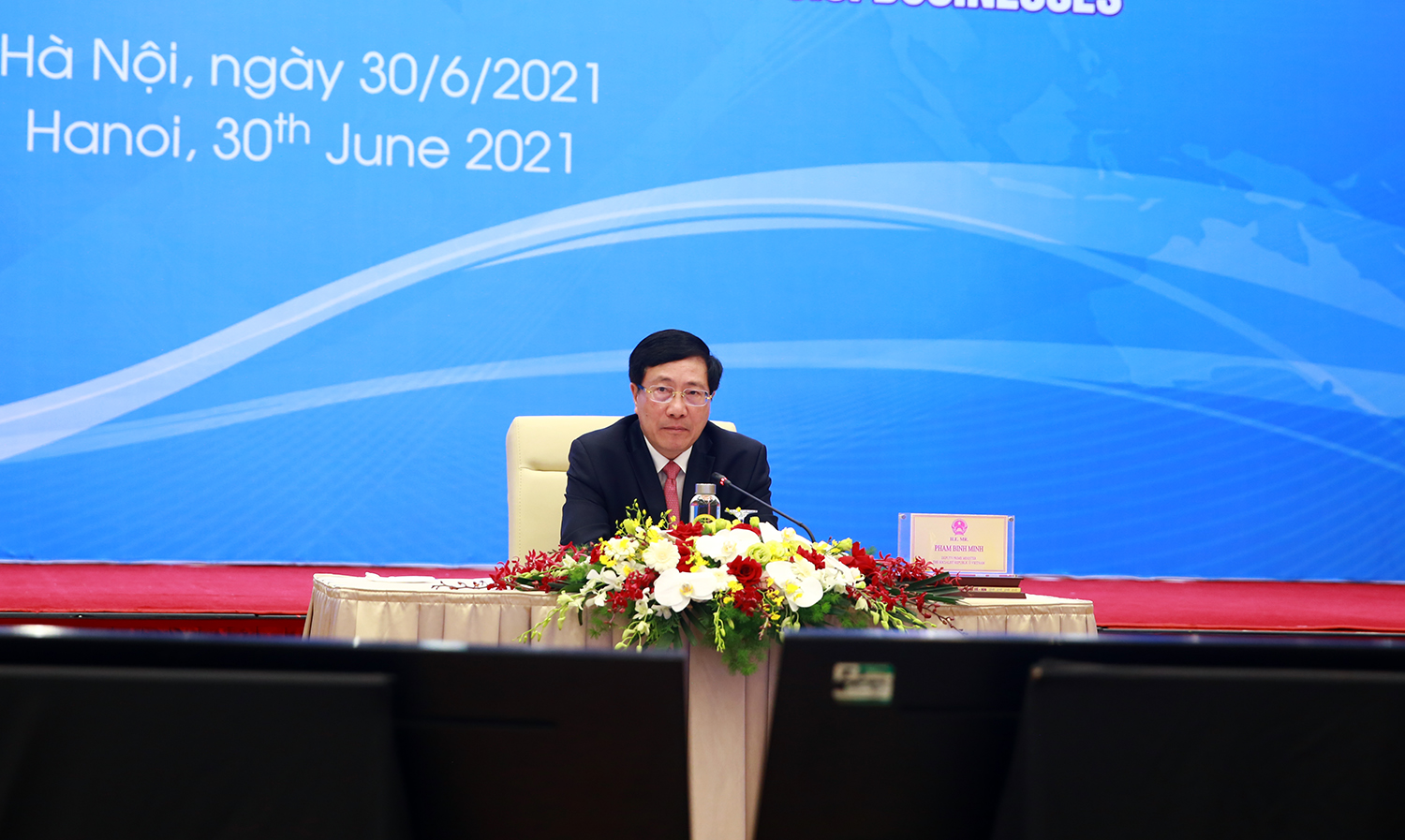 Sáng ngày 30/6, Phó Thủ tướng Chính phủ Phạm Bình Minh đã chủ trì Tọa đàm trực tuyến với cộng đồng doanh nghiệp Hoa Kỳ để cùng chia sẻ tầm nhìn, sáng kiến và giải pháp thúc đẩy quan hệ Việt Nam-Hoa Kỳ phát triển sâu rộng cũng như hỗ trợ Việt Nam trong quá trình phục hồi, phát triển kinh tế sau đại dịch COVID-19.