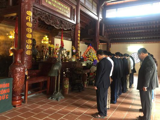 Trước bàn thờ đất thiêng khí tụ, đoàn kính cấn nghiêng mình thắp những nén hương thơm,dâng lẵng hoa tươi thắm bày tỏ lòng thành,sự biết ơn đối với công lao to lớn của đồng chí, nguyện học tập và làm theo tấm gương cao đẹp của đồng chí , không ngừng rèn luyện phấn đấu nỗ lực công tác tốt hơn nữa để đóng góp xứng đáng vào công cuộc xây dựng và phát triển đất nước. cầu mong anh linh đồng chí luôn phù hộ cho quê hương an bình thịnh vượng,quốc thái dân an,cho các đồng chí trong đoàn và gia đình luôn luôn mạnh khỏe,an khang và thành đạt, phù hộ cho lễ kỷ niệm 550 năm danh xưng Hưng Nguyên thành công tốt đẹp.