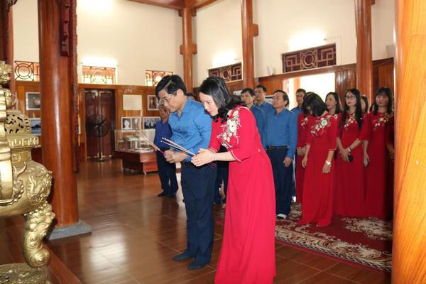 Trong giờ phút thiêng liêng, đoàn đại biểu đã thành kính dâng hương, dâng hoa tưởng niệm lên anh linh của đồng chí Nguyễn Thị Minh Khai, nguyện học tập theo tấm gương cao đẹp của đồng chí.