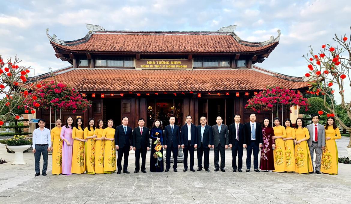 Hôm nay, ngày 16 tháng 1 năm 2024 (nhằm ngày 06 tháng 12 năm Quý Mão), trong không khí vui tươi, phấn khởi của toàn Đảng, toàn dân và toàn quân hướng tới kỷ niệm 94 năm Thành lập Đảng Cộng Sản Việt Nam và đón chào năm mới Xuân Giáp Thìn 2024, với truyền thống tốt đẹp “Uống nước Nhớ nguồn” của dân tộc Việt Nam, Đoàn đại biểu lãnh đạo Đảng, Nhà nước và các Ban, Bộ, ngành, cơ quan Trung ương đã về tại di tích quốc gia Khu lưu niệm Tổng Bí thư Lê Hồng Phong, xã Hưng Thông, huyện Hưng Nguyên thành kính dâng hoa, dâng hương tưởng niệm, bày tỏ tấm lòng tri ân và biết ơn vô hạn đối với công lao to lớn của Tổng Bí thư Lê Hồng Phong.