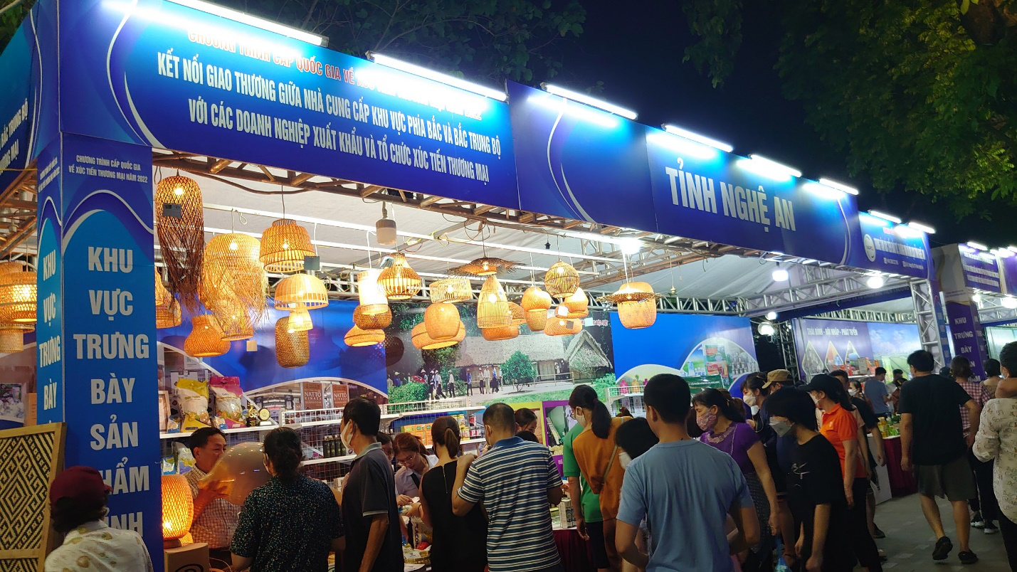 Song song với Hội nghị kết nối giao thương là khu trưng bày giới thiệu sản phẩm tiểu biểu, tiềm năng xuất khẩu của các doanh nghiệp đến từ 23 tỉnh, thành phố trong đó có tỉnh Nghệ An được tổ chức trong khu phố đi bộ, quanh hồ Hoàn Kiếm, diễn ra từ ngày 20/5 đến hết ngày 22/5/2022.