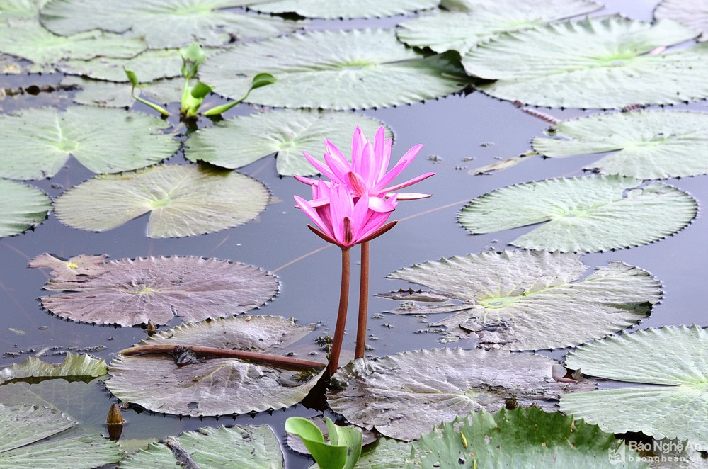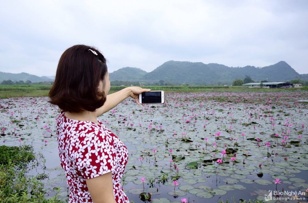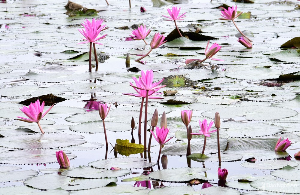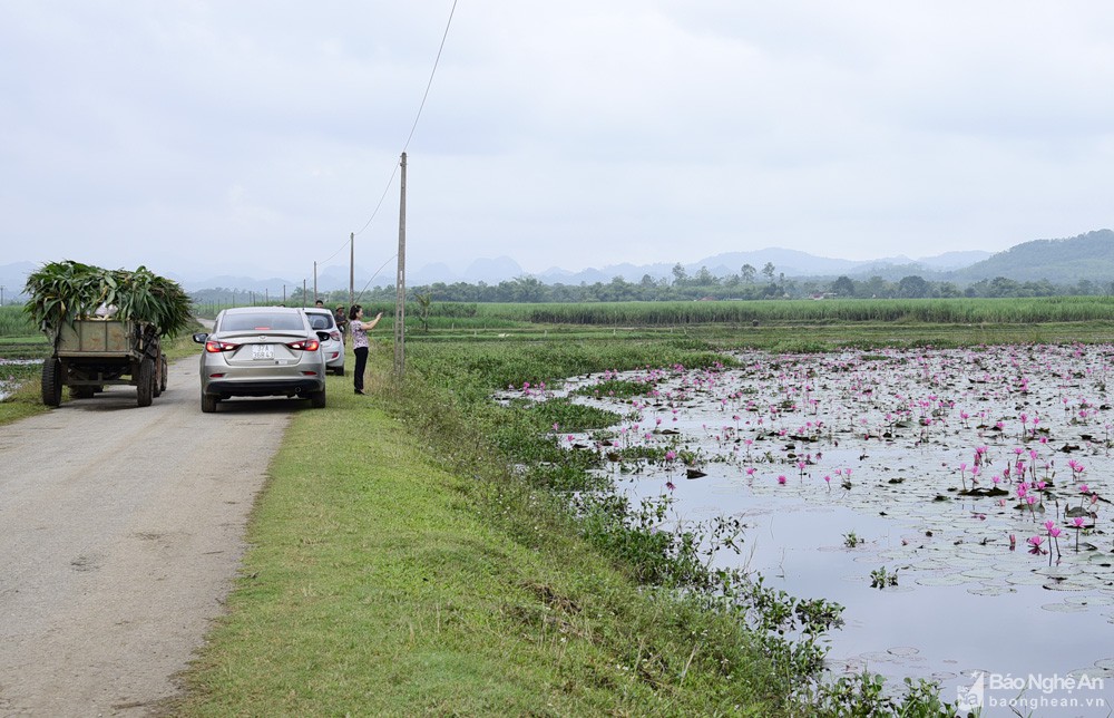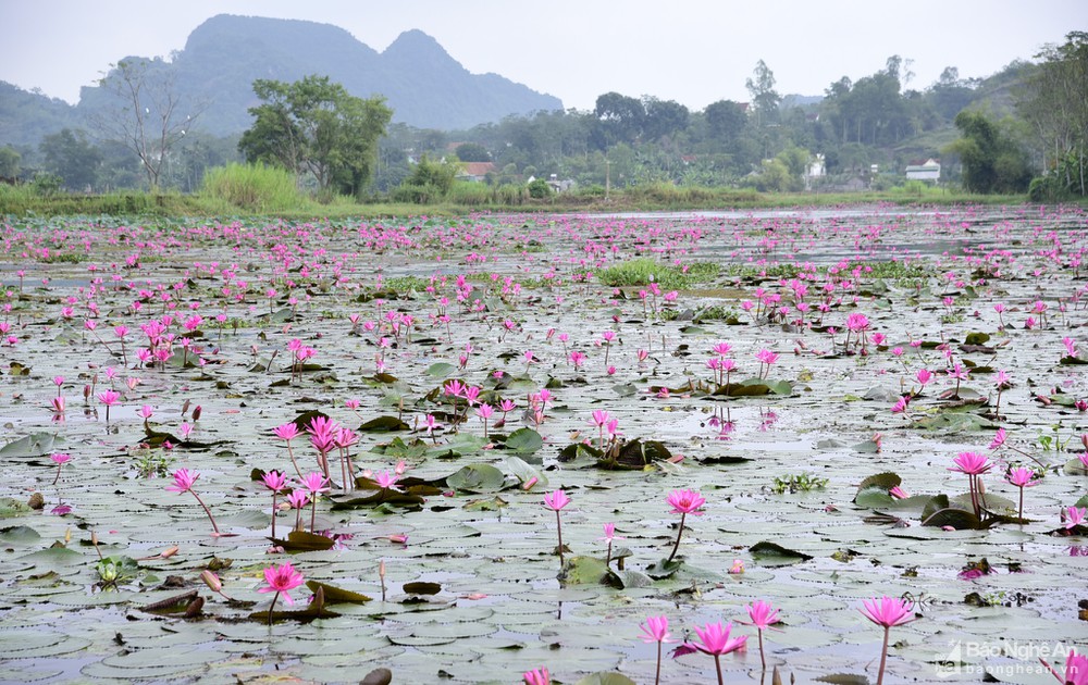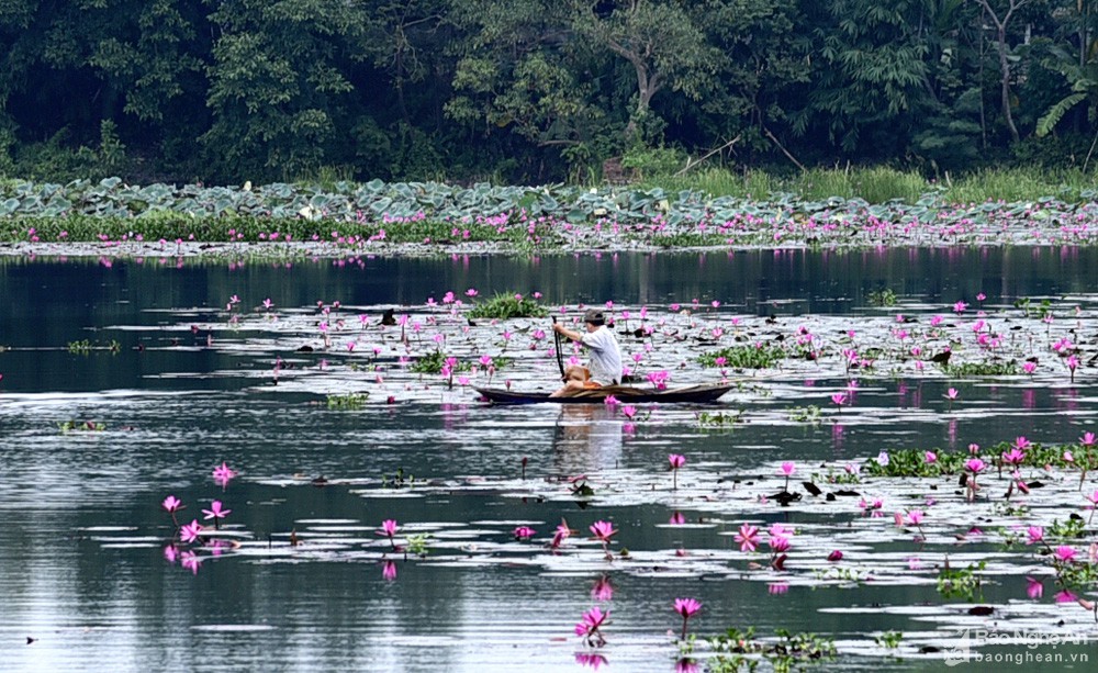 Cứ mỗi độ thu về, nhiều hồ, đập tại huyện Tân Kỳ được phủ kín một màu tím khi hoa súng bước vào mùa nở rộ.