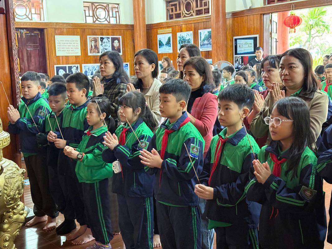 Ngay khi đặt chân đến khu di tích, trong không khí trang nghiêm và thành kính, các em học sinh cùng thầy cô giáo đã dâng hoa, dâng hương lên anh linh đồng chí Nguyễn Thị Minh Khai – người nữ chiến sĩ cộng sản kiên trung, nhà lãnh đạo xuất sắc của phong trào cách mạng Việt Nam. Những bông hoa tươi thắm và lời hứa trong sáng của các em như thay cho tấm lòng tri ân sâu sắc gửi đến người con ưu tú của dân tộc.