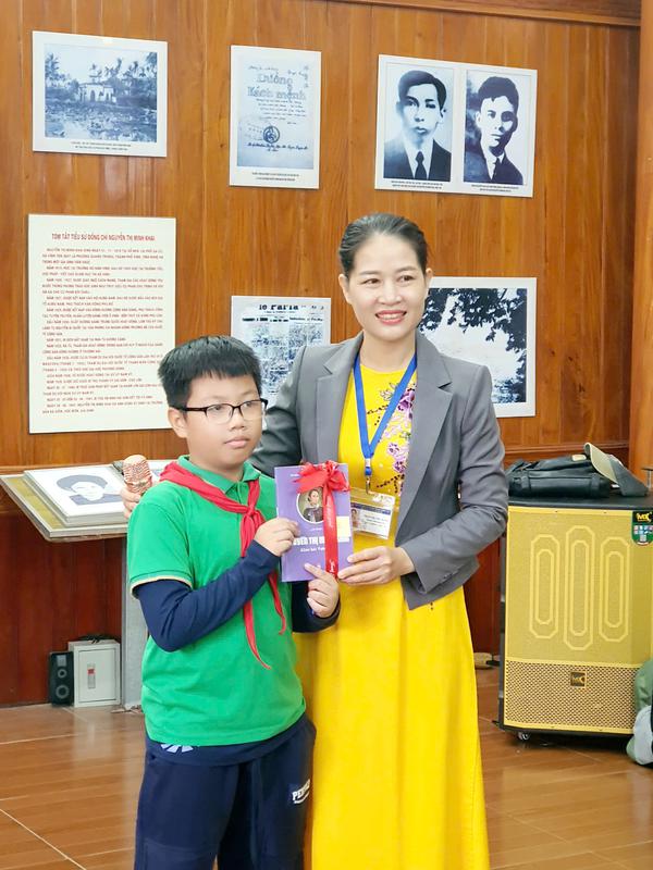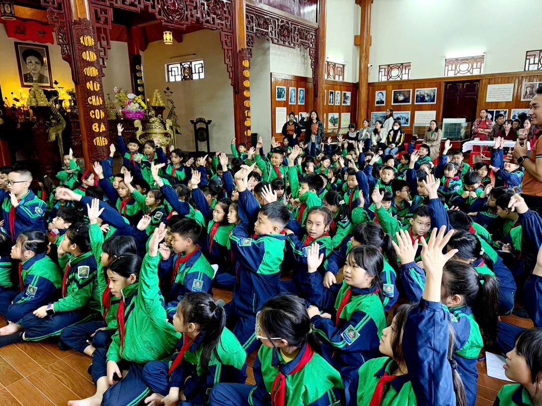 Không chỉ dừng lại ở việc tham quan, tìm hiểu, các em còn được tham gia phần giao lưu trả lời câu hỏi – nhận quà do Ban Quản lý di tích tổ chức. Những câu hỏi xoay quanh cuộc đời, cống hiến của đồng chí Nguyễn Thị Minh Khai giúp học sinh củng cố kiến thức lịch sử, đồng thời khơi dậy niềm tự hào, lòng biết ơn sâu sắc với thế hệ đi trước.
