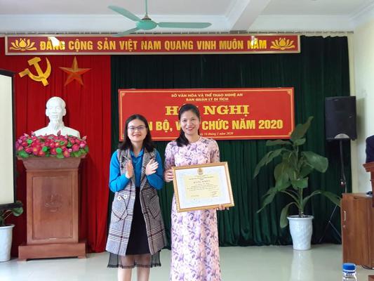 Sáng ngày 16/01/2020, Ban quản lý Di tích tỉnh Nghệ An đã tổ chức Hội nghị cán bộ viên chức năm 2020. Trong năm 2019 Ban quản lý Di tích đã đạt nhiều thành tích về công phát phát huy giá trị di tích, tu bổ tôn tạo di tích như: đã làm tốt công tác tổ chức đón bằng xếp hạng cho 20 di tích; Hướng dẫn công tác tổ chức cho 23 lễ hội truyền thống; lập hồ sơ xếp hạng 12 di tích và 02 di tích cấp quốc gia; tham gia công tác rà soát phục hồi di sản Hán Nôm huyện Hưng Nguyên; làm 24 biển chỉ dẫn di tích và 02 bia dẫn tích; tổ chức tốt các hoạt động tại 03 di tích do đơn vị trực tiếp quản lý; hoàn thành tu bổ, tôn tạo cho 9/9 di tích; phòng chống mối cho 6/6 di tích; đều chỉnh khoanh vùng bảo vệ cho 4 cho di tích; cấp bình phòng cháy chữa cháy 188 bình cho 81 di tích; cắm mốc ranh giới khoanh vùng bảo vệ 11/11 di tích.v.v.