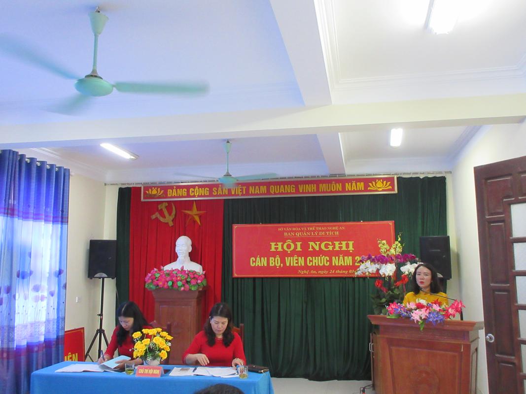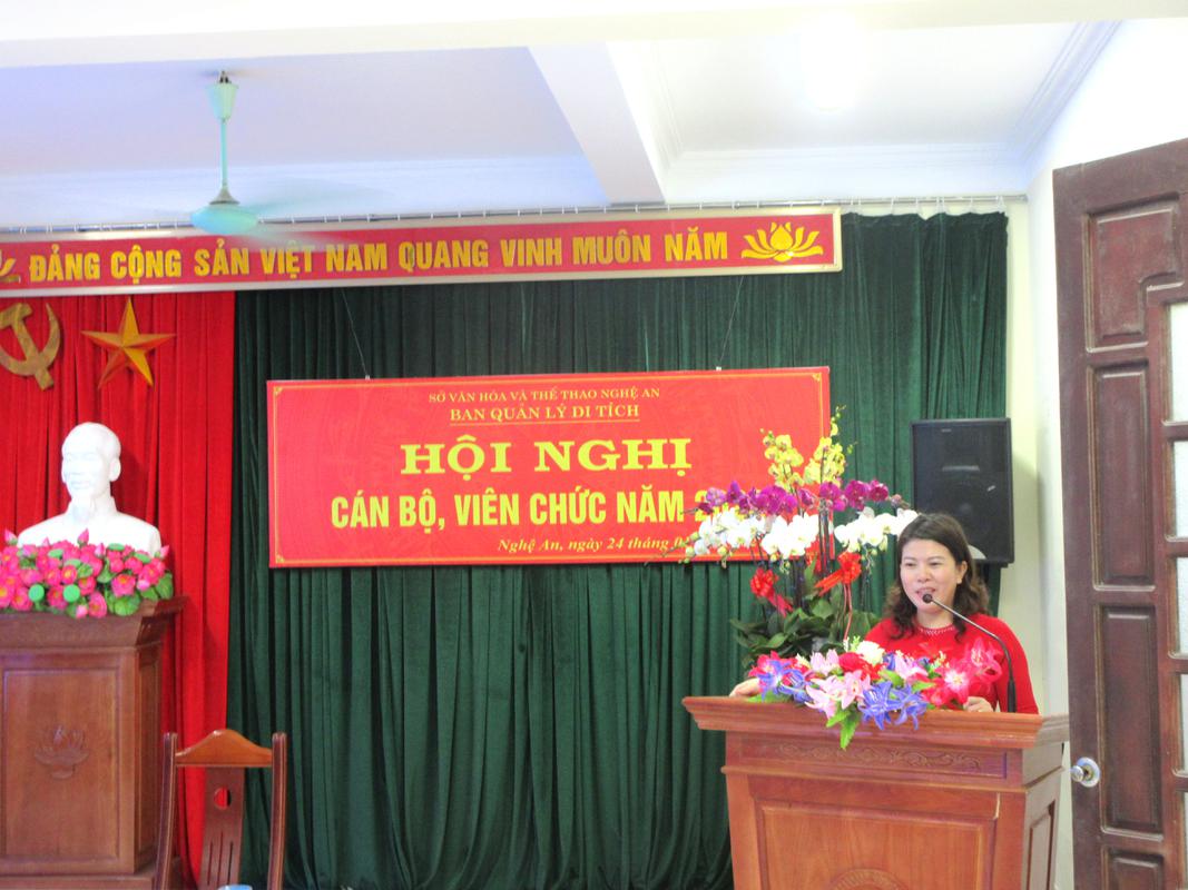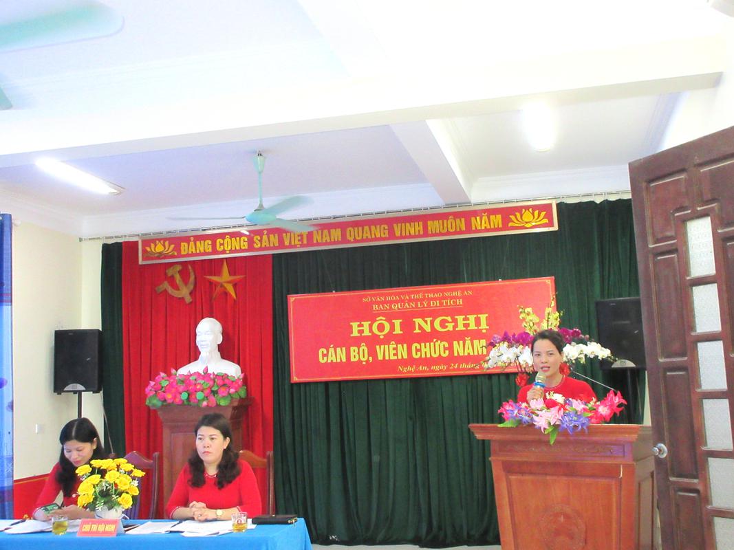 Dự hội nghị có: đồng chí Trần Thị Mỹ Hạnh – Tỉnh ủy viên, Bí thư Đảng ủy, Giám đốc Sở VHTT; đồng chí Nguyễn Công Danh – Ủy viên BTV Liên đoàn lao động tỉnh, Chủ tịch Công đoàn Viên chức Nghệ An; Đại diện phòng an ninh chính trị nội bộ (PA03) Công an Tỉnh Nghệ An; Đại diện phòng quản lý Di sản văn hóa; phòng Tổ chức - Pháp chế; Văn phòng Sở; phòng Thanh tra; phòng Kế hoạch – Tài chính; cùng các đồng chí lãnh đạo, cán bộ viên chức và người lao động Ban quản lý Di tích Nghệ An .