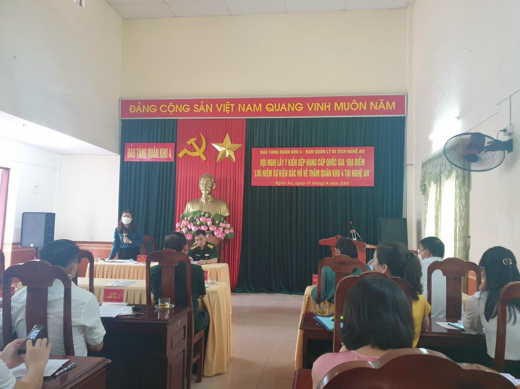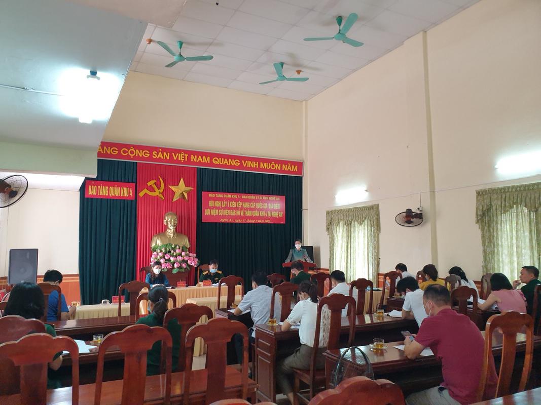 Thực hiện chương trình kế hoạch năm 2021, Ban quản Di tích Nghệ An phối hợp với Bảo tàng Quân khu 4, tổ chức hội nghị lấy ý kiến về hồ sơ xếp hạng cấp quốc gia “ Địa điểm lưu niệm sự kiện Bác Hồ về thăm Quân khu 4 tại Nghệ An ngày 15/6/1957”.