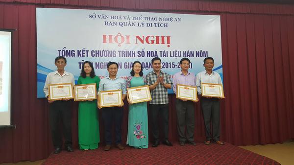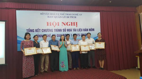 Ngày 8/6/2018, Ban quản lý Di tích tỉnh Nghệ An đã tổ chức Hội nghị tổng kết chương trình số hóa tài liệu Hán Nôm tỉnh Nghệ An giai đoạn I (2015-2018). Tham dự hội nghị có ông Phạm Đình Phong - Phó Cục trưởng Cục Di sản Văn hóa, bà Trần Thị Mỹ Hạnh - Phó giám đốc Sở VH - TT, ông Vĩnh Quốc Bảo - Phó giám đốc Thư viện khoa học tổng hợp Thành phố Hồ Chí Minh, cùng đại diện các phòng, trung tâm văn hóa 16 huyện, Thị xã, Thành phố và các di tích trên địa bàn tỉnh.
