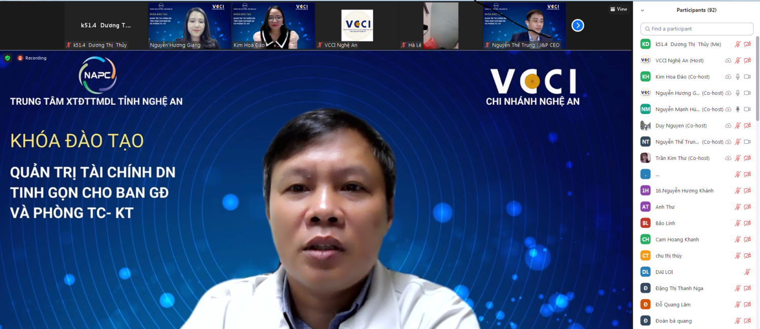 Lớp bồi dưỡng nhằm trang bị và cung cấp cho cộng đồng doanh nghiệp Nghệ An những kiến thức nền tảng và nâng cao về quản trị tài chính doanh nghiệp tinh gọn, giúp các doanh nghiệp chuẩn hóa, giảm các lãng phí và đạt được nhiều hiệu quả trong hoạt động kinh doanh, trong thời kỳ kinh tế khó khăn do dịch Covid 19 như hiện nay.