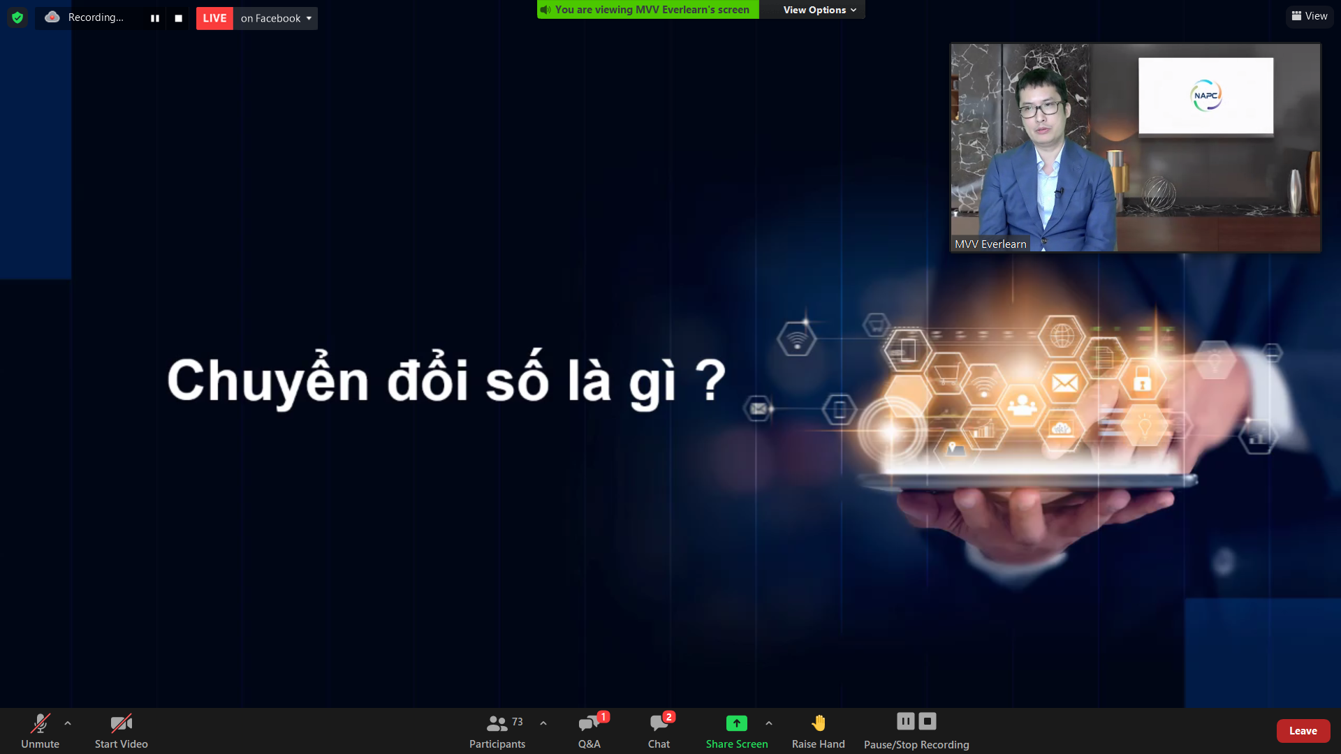 Với mục tiêu hỗ trợ cộng đồng doanh nghiệp Nghệ An tiếp cận các khái niệm về chuyển đổi số cũng như hiểu rõ hơn về lợi ích của chuyển đổi số mang lại, diễn giả Nguyễn Thanh Sơn - Chủ tịch MVV Academy đã giới thiệu các nội dung cơ bản, ý nghĩa cấp thiết của việc chuyển đổi số trong trạng thái bình thường mới khi cuộc cách mạng công nghệ 4.0 đã tăng tốc. Tình hình ứng dụng công nghệ và chuyển đổi số trên thế giới ; qua đó giúp doanh nghiệp nắm rõ hơn những thông tin về cơ hội, thách thức, cũng như những quy trình, mục tiêu, giải trước khi doanh nghiệp muốn thực hiện chuyển đổi số.