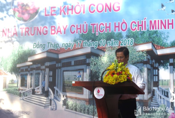 Ông Nguyễn Hữu Lý - Phó Giám đốc Sở Văn hóa, Thể thao và Du lịch Đồng Tháp phát biểu tại lễ khởi công. Ảnh: Nguyễn Toàn Phát biểu tại Lễ khởi công, ông Nguyễn Hữu Lý - Phó Giám đốc Sở Văn hóa, Thể thao và Du lịch Đồng Tháp cho biết, việc đầu tư xây dựng công trình Nhà trưng bày Chủ tịch Hồ Chí Minh sẽ tạo nên một diện mạo mới cho Khu di tích Nguyễn Sinh Sắc.