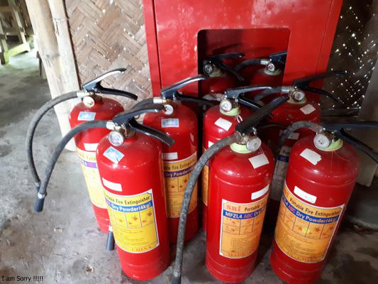Kiểm tra thực tế: - Trang bị phương tiện chữa cháy gồm: 24 bình bột chữa cháy MFZl4-ABC (02 bình hỏng); 04 bình chữa cháy MFZ8-ABC; 03 bình chữa cháy CO2-MT3; 01 máy bơm chữa cháy; 04 trụ nước chữa cháy ngoài nhà; hệ thống tưới mát nhà tranh; 03 bộ nội quy, tiêu lệnh, biển cấm lửa, cấm hút thuốc tại các khu vực theo quy định.