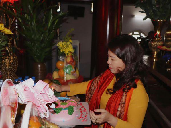 Đồng chí Trần Thị Kim Phượng - Trưởng Ban quản lý Di tích Nghệ An dâng bánh sinh nhật kính dâng cụ Phan Bội Châu