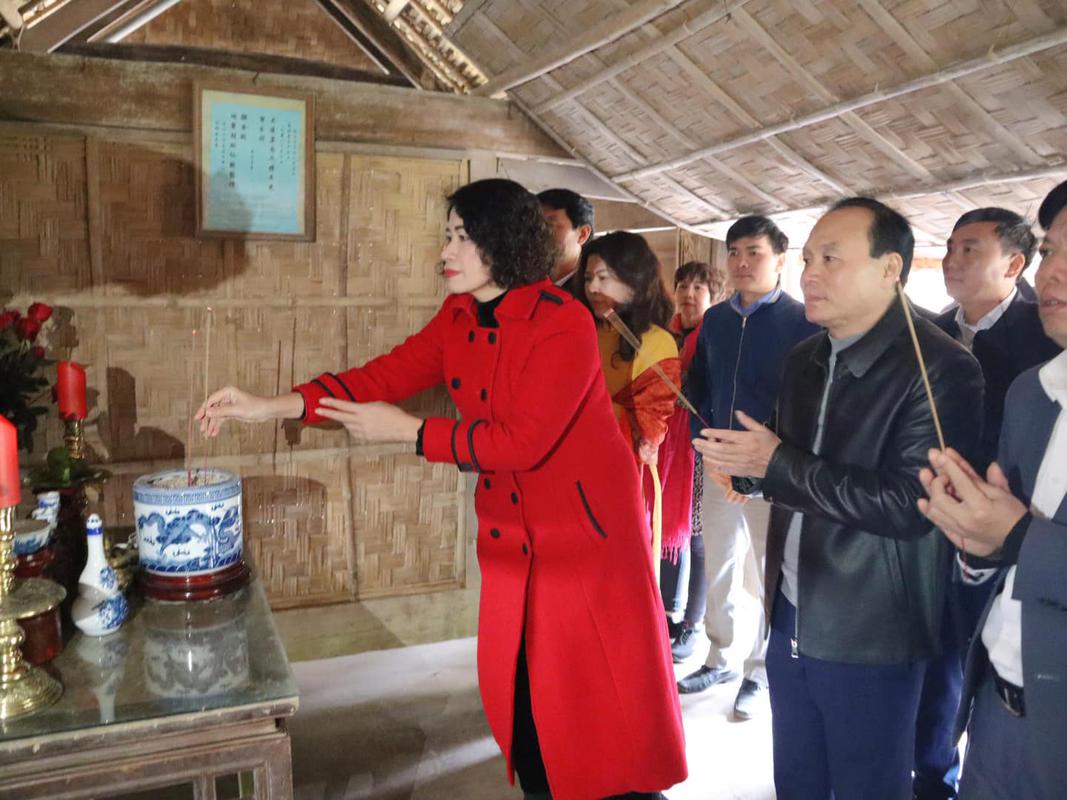 Đồng chí Trần Thị Hiên, Phó Bí thư Thường trực, Chủ tịch HĐND huyện cùng các đại biểu dâng hương tại nhà tranh