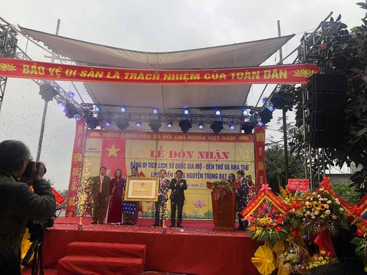 Lễ đón nhận bằng xếp hạng di tích lịch sử cấp Quốc gia Mộ - Đền thờ và Nhà thờ Nguyễn Trọng Đạt.