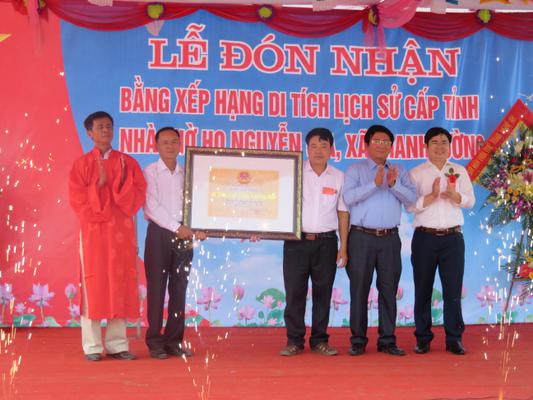 Hôm nay, ngày 5/5/2018 (nhằm ngày 20/3 âm lịch), UBND huyện Thanh Chương phối hợp với UBND xã Thanh Tường và dòng họ Nguyễn Gia long trọng tổ chức lễ đón nhận bằng xếp hạng di tích lịch sử cấp tỉnh nhà thờ họ