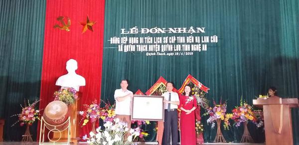 Hôm nay, ngày 19 tháng 4 năm 2019, UBND huyện Quỳnh Lưu, UBND xã Quỳnh Thạch tổ chức lễ đón nhận bằng xếp hạng di tích Đền Hạ Lam Cầu, xã Quỳnh Thạch, huyện Quỳnh Lưu, tỉnh Nghệ An.