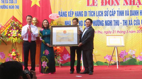 Tham dự buổi lễ Đ/c Hồ Mậu Thanh, Tỉnh ủy viên-Giám đốc Sở VH-TT Nghệ An đã trao bằng xếp hạng cho địa phương và có bài phát biểu tại buổi lễ.
