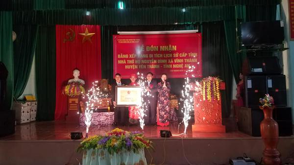 Ngày 06/12/2018 UBND tỉnh ban hành quyết định 5401/QĐ.UBND công nhận Nhà thờ họ Nguyễn Đình xã Vĩnh Thành, huyện Yên Thành là di tích lịch sử cấp tỉnh. Đây là niềm vinh dự, tự hào nhưng cũng là trách nhiệm để chính quyền địa phương cùng con cháu dòng họ Nguyễn Đình tiếp tục bảo tồn, lưu giữ và phát huy các giá trị của di tích cho các thế hệ mai sau.