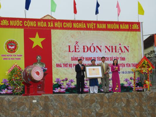 Hôm nay, ngày 16/3/2018 được sự cho phép của Sở VH-TT Nghệ An, UBND xã Hoa Thành đã tổ chức lễ đón nhận bằng xếp hạng di tích lịch sử cấp Tỉnh nhà thờ họ Phan Văn, chi ba.