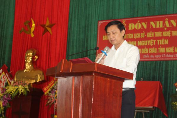 Tại buổi lễ Đồng chí Nguyễn Xuân Thủy mong muốn Đảng bộ và nhân dân huyện Diễn nói chung, Đảng bộ và nhân dân xã Diễn An nói riêng sẽ làm tốt hơn nữa việc bảo tồn, phát huy giá trị di tích, thực hiện tốt Luật Di sản văn hóa, để di tích mãi mãi trường tồn, trở thành địa điểm gắn kết các thế hệ về với cội nguồn- nơi giáo dục truyền thống, bồi đắp thêm tình yếu với quê hương xứ sở./.