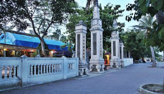 Đền nằm ở vị trí cảnh quan đẹp, sơn thủy hữu tình. Trước mặt đền là dòng Lam giang như một dải lụa xanh trải rộng, thuyền bè tấp nập ngược xuôi; quanh đền là sông Cồn Mộc uốn khúc, ôm ấp, hai bên bờ sông là những đồng lúa bát ngát, xanh tươi. Phía sau, bên kia sông Cồn Mộc là núi Kỳ Lân, núi Dũng Quyết và Phượng Hoàng Trung Đô với những dấu tích lịch sử, những rừng thông, bạch đàn bạt ngàn tươi tốt. Ngoài cảnh đẹp kỳ thú, từ lâu, đền đã nổi tiếng linh thiêng vì ở đây ngoài thờ quan Hoàng Mười, còn phối thờ các vị Song Đồng Ngọc Nữ; vị Quốc công Thái bảo Phúc Quận Công; Phụ Quốc Thượng tướng quân Nguyễn Duy Lạc.