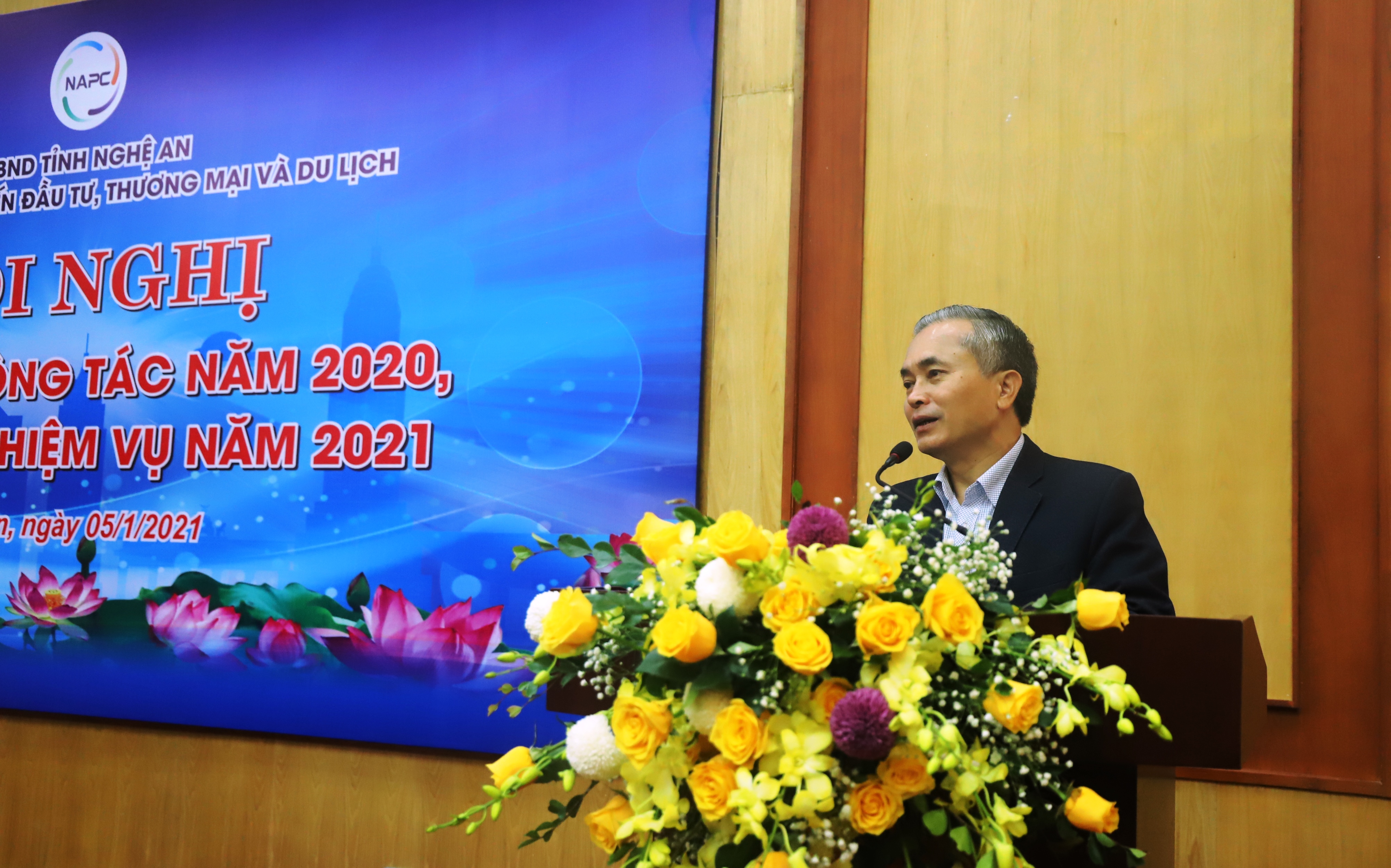 Nhiều nội dung được triển khai hiệu quả: Tham gia Hội nghị “Gặp gỡ Hàn Quốc” , “Gặp gỡ Nghệ An - Nhật Bản”; Hội nghị “Giải pháp thúc đẩy sản xuất chế biến và xuất khẩu lâm sản năm 2021 và giai đoạn 2021-2025” trong chuỗi sự kiện “Lâm nghiệp Việt Nam - 75 năm hình thành và phát triển”; Tham gia Hội thảo xúc tiến đầu tư Nhật Bản do Cục ĐTNN (Bộ Kế hoạch và Đầu tư) phối hợp Ngân hàng SMBC (Nhật Bản) tổ chức tại Hà Nội.; Đón tiếp và làm việc với nhiều Đoàn đối tác, nhà đầu tư trong và ngoài nước đến tìm hiểu, nghiên cứu đầu tư vào tỉnh Nghệ An; bao gồm: 6 Đoàn nhà đầu tư trong nước; 3 Đoàn nhà đầu tư nước ngoài: Hàn Quốc, Trung Quốc, Nga nghiên cứu môi trường đầu tư, khảo sát thực địa, địa điểm đầu tư và các vấn đề khác liên quan tới đầu tư, tập trung vào các lĩnh vực: Năng lượng điện mặt trời, nhà máy xử lý rác thải, cơ sở hạ tầng, linh kiện điện tử, kết nối doanh nghiệp nhỏ và vừa...; Tổ chức các Chương trình Xúc tiến Thương mại Quốc gia năm 2020: Hội chợ Công Thương vùng Bắc Trung Bộ Nghệ An 2020; Hội thảo tìm giải pháp đưa nông sản vào siêu thị; kết nối cung- cầu hỗ trợ tiêu thụ hàng nông sản”; Tổ chức phiên chợ đưa hàng Việt về nông thôn tại huyện Đô Lương và Tân Kỳ; Hỗ trợ các doanh nghiệp trong tỉnh tham gia các hội chợ trong nước và các đơn vị tổ chức các chương trình xúc tiến thương mại gửi thông tin đến doanh nghiệp Nghệ An.