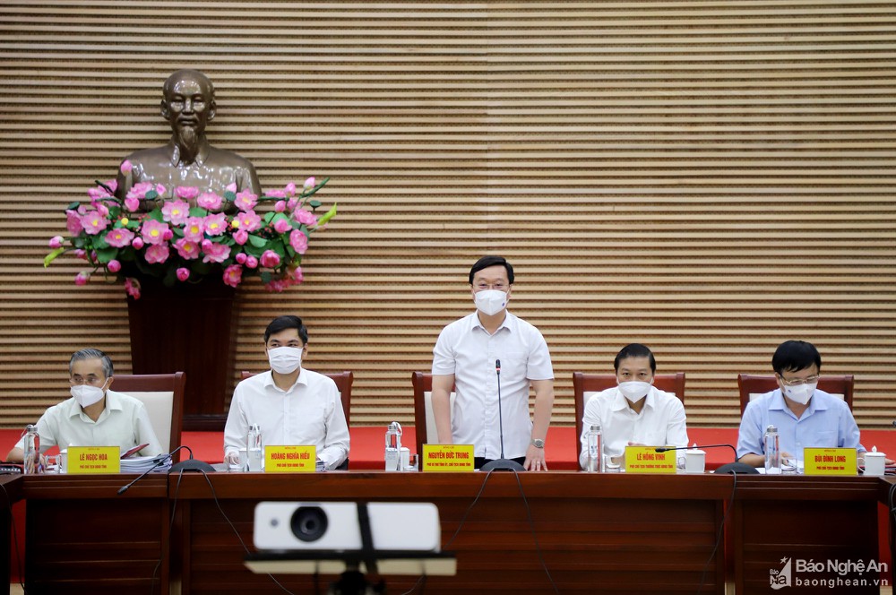 Đồng chí Nguyễn Đức Trung - Phó Bí thư Tỉnh ủy, Chủ tịch UBND tỉnh điều hành phiên họp thường kỳ UBND tỉnh tháng 7. Ảnh: Phạm BằngTính đến 7h sáng 23/7, trên địa bàn tỉnh ghi nhận 183 ca nhiễm Covid-19 ở 13 địa phương, lũy tích số bệnh nhân điều trị đã khỏi bệnh, ra viện là 88 người. Đến nay cơ bản các ca nhiễm đã xác định được nguồn lây, tình hình dịch trên địa bàn tỉnh cơ bản đã được kiểm soát. Tại TP. Vinh và nhiều khu vực ở các huyện: Diễn Châu, Nghĩa Đàn, Quỳ Hợp, Đô Lương, Quỳnh Lưu đã dừng áp dụng Chỉ thị 16 của Thủ tướng Chính phủ.