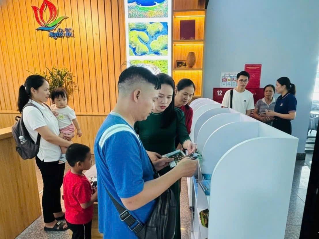 Cùng với các hoạt động chào đón chuyến bay đầu năm, Quầy Thông tin Du lịch Nghệ An tại Cảng Hàng không Quốc tế Vinh tiếp tục phát huy vai trò là điểm cung cấp thông tin, tư vấn và hỗ trợ du khách ngay khi đặt chân đến xứ Nghệ. Quầy được thiết kế theo hướng hiện đại, mở và thân thiện, hài hòa giữa yếu tố tiện ích và bản sắc văn hóa địa phương. Không gian được lồng ghép các biểu tượng đặc trưng của Nghệ An, tạo điểm nhấn nhận diện và là khu vực check in thu hút du khách. Tại quầy, hệ thống ấn phẩm, bản đồ du lịch, tài liệu giới thiệu các khu, điểm đến được cập nhật đồng bộ. Các mã QR tra cứu thông tin được bố trí thuận tiện, giúp du khách dễ dàng tiếp cận thông tin về du lịch tâm linh, nghỉ dưỡng biển, du lịch sinh thái và khám phá miền Tây Nghệ An. Bên cạnh đó, nhiều sản phẩm OCOP và đặc sản tiêu biểu của địa phương như bánh đa Đô Lương, trà sen, trà dược liệu, cá mờm rim, nước mắm Cửa Hội cũng được trưng bày, giới thiệu, góp phần quảng bá thương hiệu địa phương ngay tại cửa ngõ hàng không.