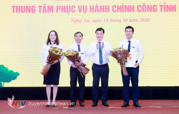 | Chủ tịch UBND tỉnh Nghệ An Nguyễn Đức Trung trao các quyết định bổ nhiệm lãnh đạo Trung tâm phục vụ hành chính công. |