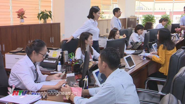 | Cán bộ, công chức, viên chức làm việc tại Trung tâm phục vụ hành chính công Nghệ An. |