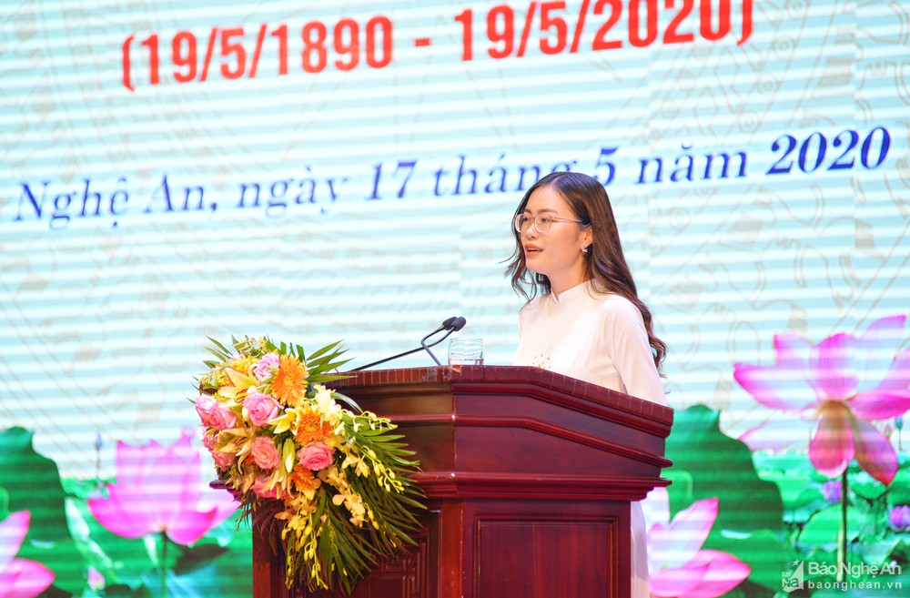 Đồng chí Phan Thị Quỳnh Trang - Chủ tịch Hội Sinh viên Trường Đại học Vinh đã có bài phát biểu nguyện hứa sẽ cố gắng nhiều hơn nữa để xứng đáng là những người kế tục sự nghiệp vẻ vang mà Bác Hồ, cũng như Đảng ta đã dày công vun đắp, xây dựng./.