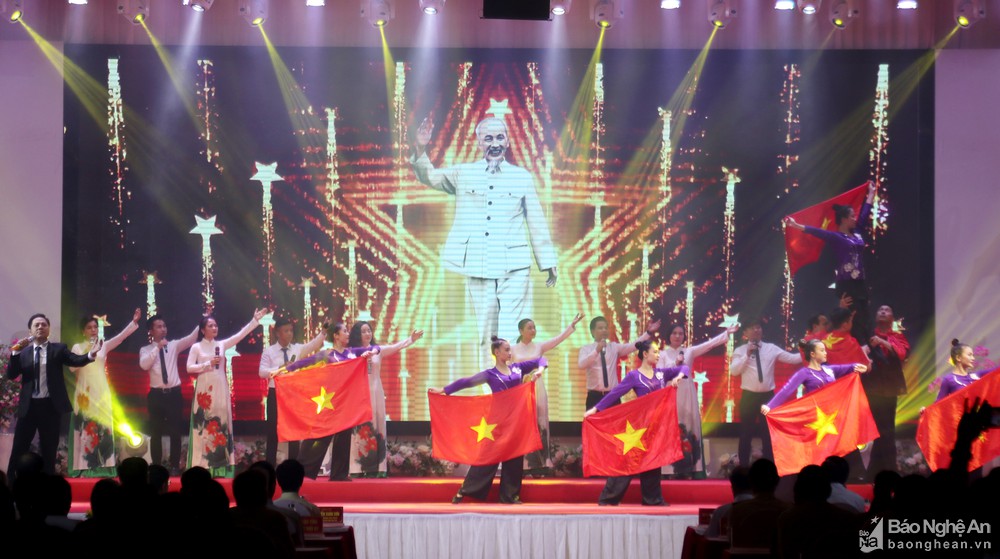 Chương trình văn nghệ chào mừng Lễ kỷ niệm 130 năm Ngày sinh Chủ tịch Hồ Chí Minh. Ảnh: Thành CườngLễ kỷ niệm 130 năm Ngày sinh Chủ tịch Hồ Chí Minh là dịp để thêm một lần nữa Đảng bộ, quân và dân Nghệ An tôn vinh cuộc đời, sự nghiệp của Người đối với dân tộc, Tổ quốc, quê hương.