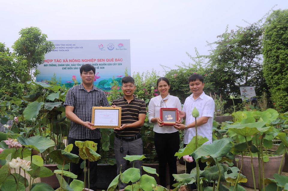 Đoàn trao chứng nhận và khảo sát mô hình du lịch gắn với đầu tư thương mại tại HTX Sen Quê Bác – Nam Đàn