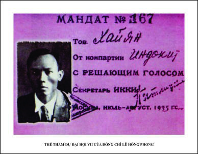 -Tại Đại hội lần thứ VII Quốc tế Cộng sản (họp từ 25-7 đến 21-8-1935), với bản tham luận quan trọng về phong trào cách mạng Đông Dương đồng chí Lê Hồng Phong đã được đại hội ghi nhận. Đảng ta được công nhận là Chi bộ chính thức của Quốc tế Cộng sản, đồng chí Lê Hồng Phong được bầu làm Ủy viên Ban Chấp hành Quốc tế Cộng sản.