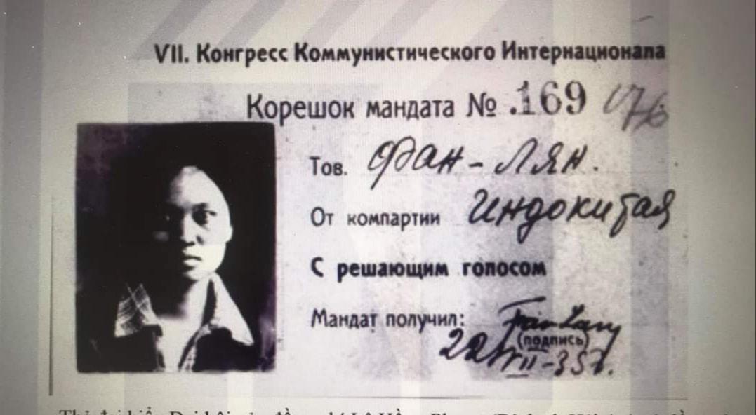Bức ảnh 2 là Tấm thẻ đại biểu của Nguyễn Thị Minh Khai dự Đại hội Quốc tế Cộng sản Matxcơva, tháng 7/1935. Bức ảnh này đã được báo chí đăng nhiều. Chỉ lưu ý trên tấm thẻ này, Nguyễn Thị Minh Khai sử dụng bí danh là Fan Lian (ФАН ЛЯН), có chữ ký đề ngày 22/7/1935. Đại hội quốc tế Cộng sản lần thứ 7 tổ chức tại Moskva từ 25/7 đến 20/8/1935.