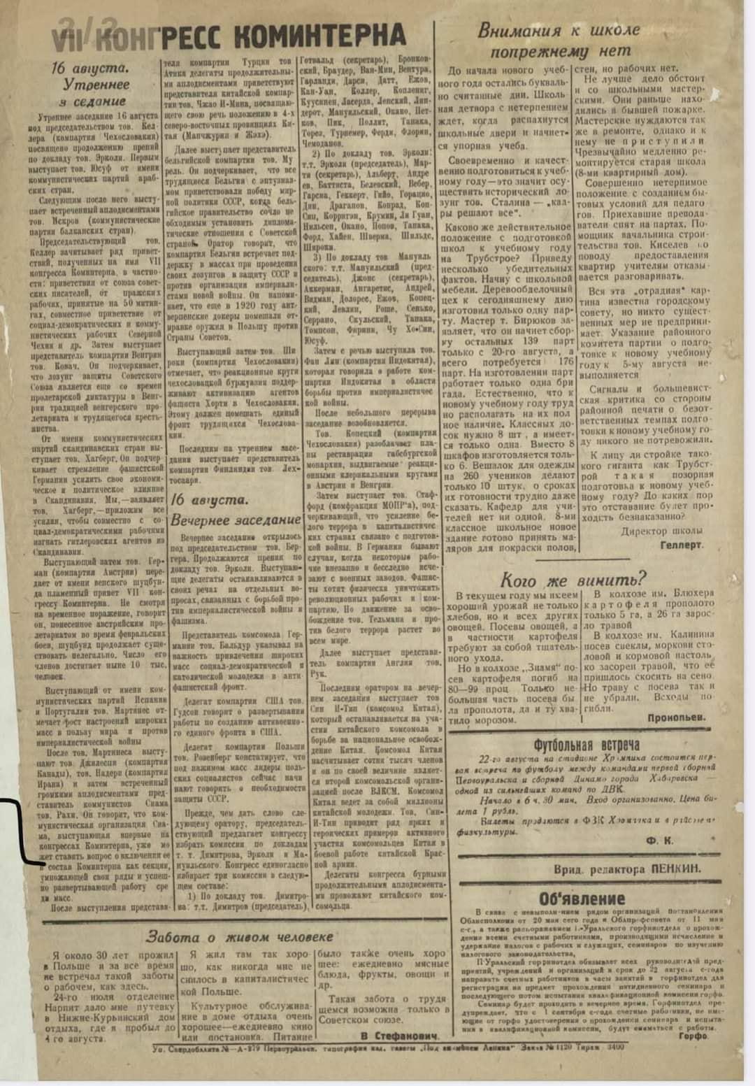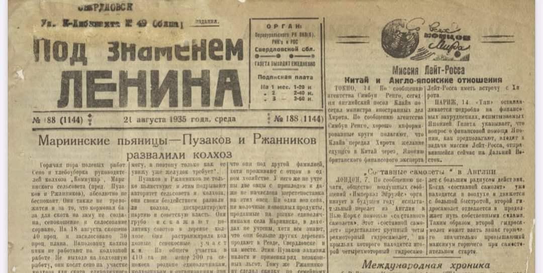 Số báo "Dưới Ngọn cờ Lênin" (Под знаменем Ленина) ra ngày thứ Tư 21/8/1935, số báo 188(1144). Đây là cơ quan ngôn luận của tỉnh ủy Sverdlovsk (ảnh 4)