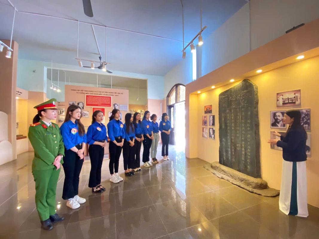 Đoàn viên thanh niên nghe thuyết minh về cuộc đời và sự nghiệp cách mạng của nhà chí sỹ yêu nước Phan Bội Châu.