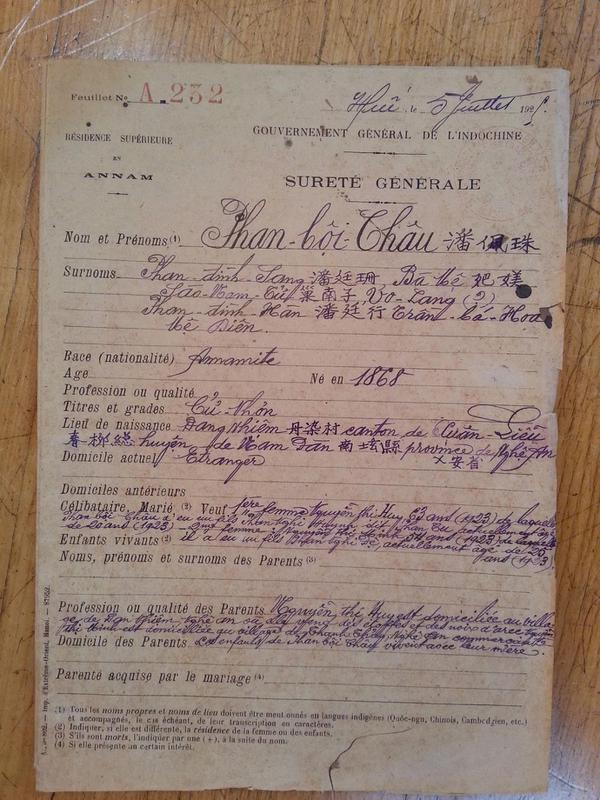Thân thế Phan Bội Châu trong hồ sơ mật thám Pháp
