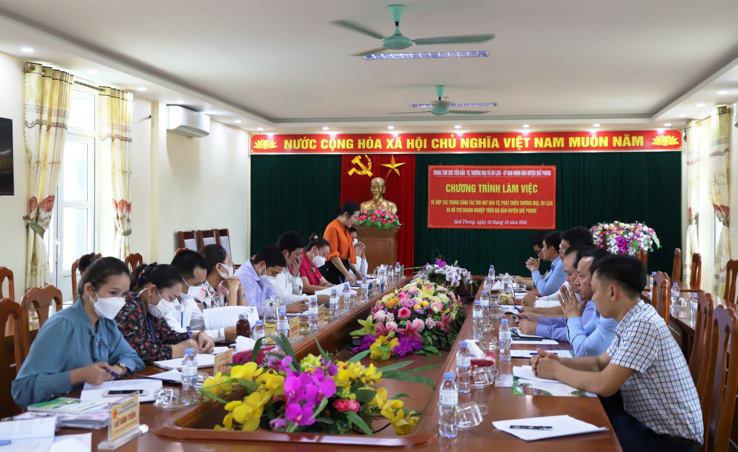 Từ các nội dung đó, theo chức năng nhiệm vụ chuyên môn, Trung tâm và huyện Quế Phong đã nêu ra được một số nội dung lựa chọn hợp tác cụ thể nhằm tăng cường hiệu quả trong công tác thu hút đầu tư, phát triển thương mại, du lịch và kết nối hỗ trợ doanh nghiệp vượt qua khó khăn trong thời gian tới. cụ thể: