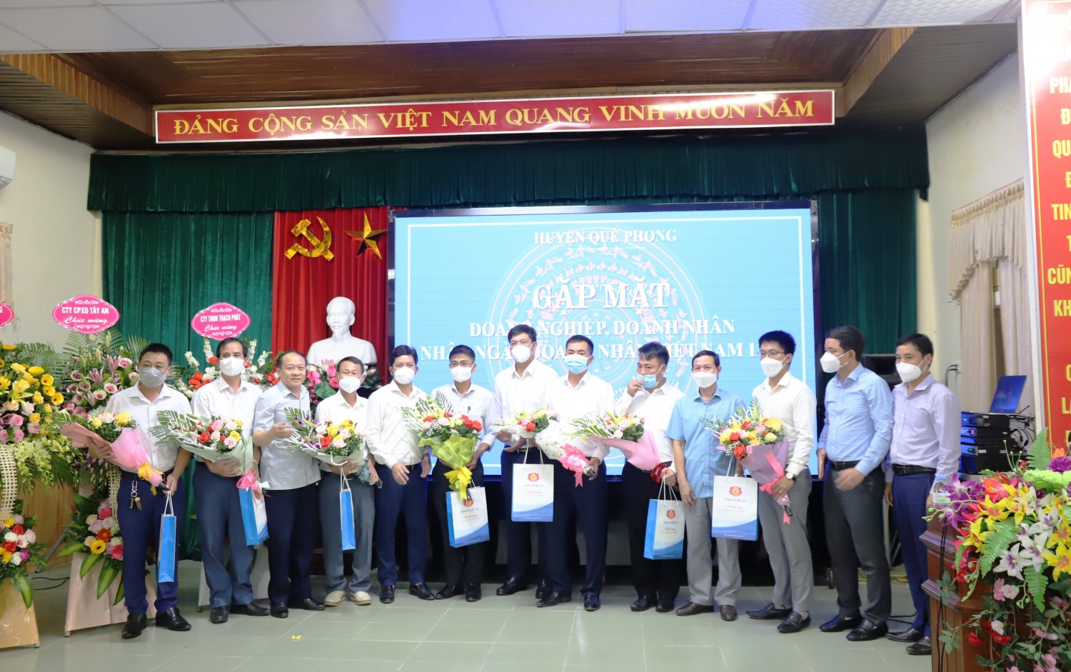 Cũng trong chương trình làm việc, Lãnh đạo Trung tâm và lãnh đạo huyện Quế Phong cũng đã gặp gỡ, chúc mừng và chia sẽ những khó khăn cùng với doanh nghiệp, doanh nhân trên địa bàn huyện Nhân Ngày Doanh nhân Việt Nam 13/10. Đây còn là dịp nhằm tôn vinh động viên các doanh nghiệp kịp thời góp phần tháo gỡ hỗ trợ các doanh nghiệp, doanh nhân sớm vượt qua những khó khăn trong thời gian tới.