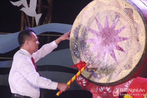 Tại buổi lễ khai trương, đồng chí Hoàng Văn Bộ - Phó Bí thư Huyện ủy, Chủ tịch UBND huyện Quỳnh Lưu đã thực hiện nghi thức đánh trống, khai trương mùa du lịch biển Quỳnh năm 2019.